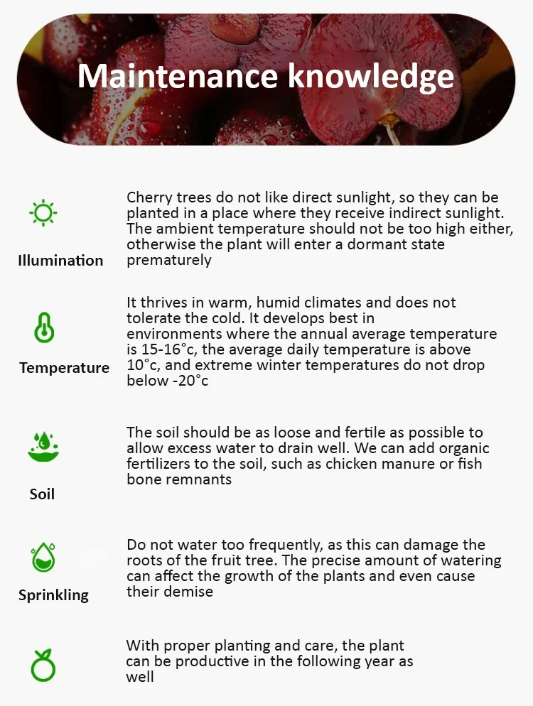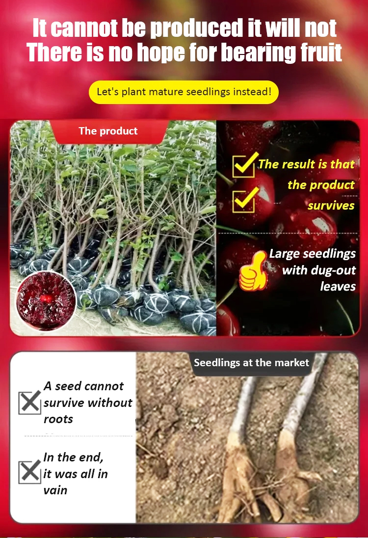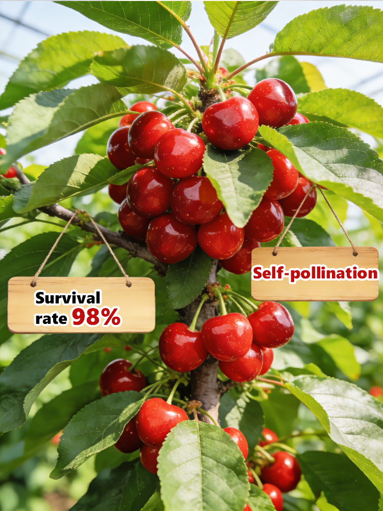 🍒Meets 4J large-fruit standards. High-yield harvests, with fruit larger than ping pong balls!